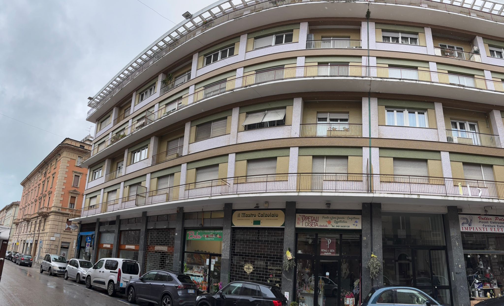 L’immobile si trova all’interno di un edificio di sei piani fuori terra, con ingressi su Corso Amendola e Via Cadorna. Il fabbricato, realizzato in calcestruzzo armato, risale agli anni ’70-’80 ed è caratterizzato da una pianta rettangolare, copertura piana e balconi che si sviluppano lungo l’intero perimetro.