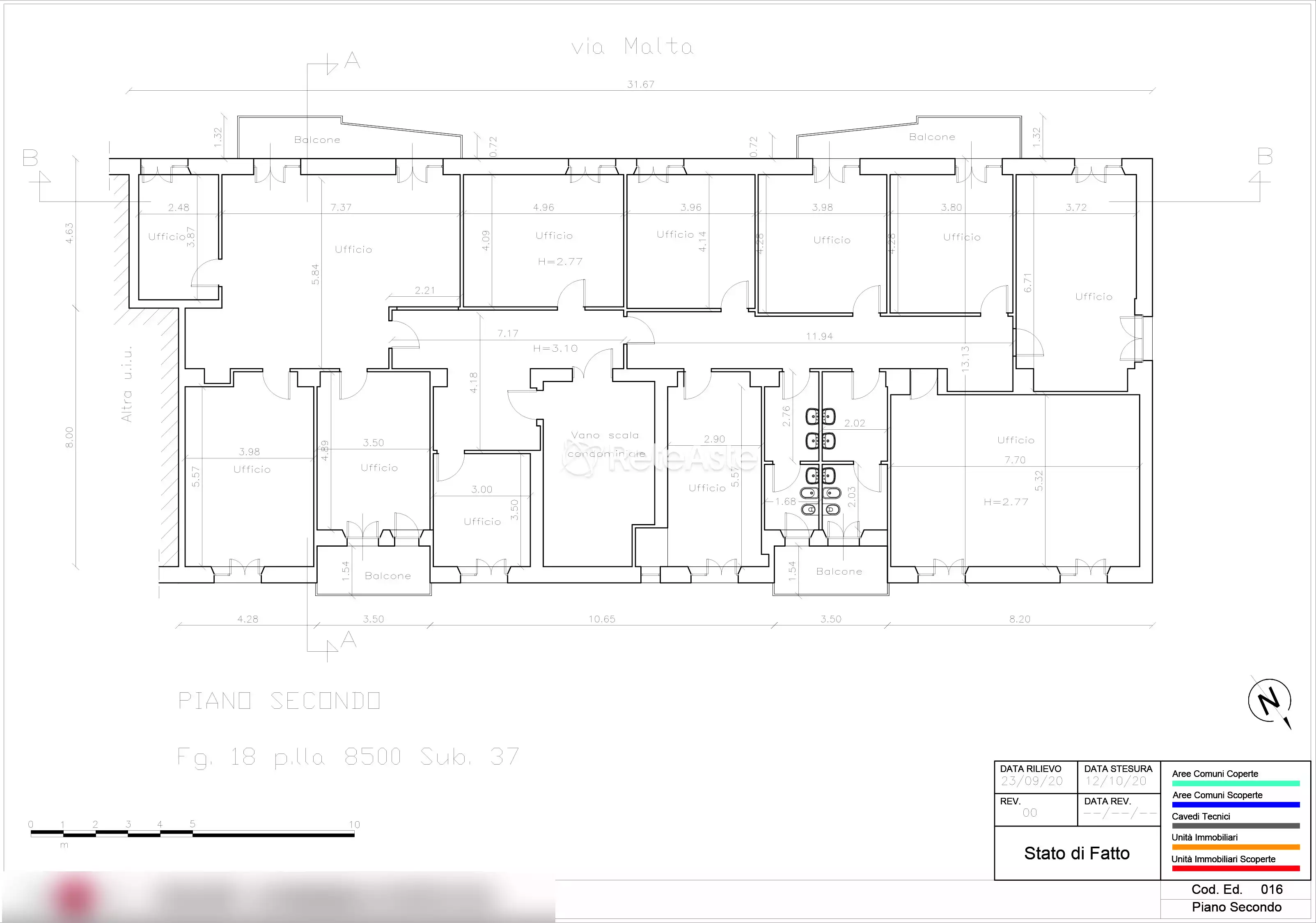 Unità immobiliare ad uso ufficio comprendente un intero secondo piano facente parte di un ampio fabbricato di tipo civile di totale di nove piani, serviti da un ascensore e un corpo scala.