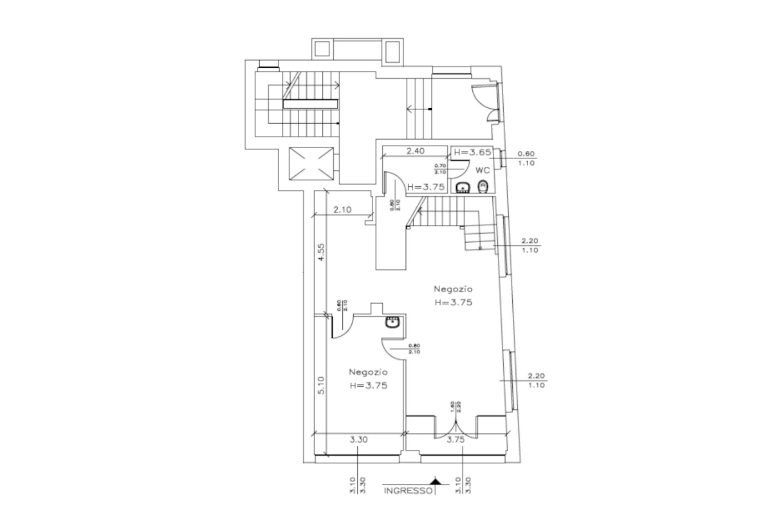L’unità, dotata di ingresso indipendente direttamente sulla via, si presenta composta da: due locali commerciali luminosi e ben distribuiti; un locale spogliatoio; un servizio igienico; scala interna di collegamento al piano primo, ideale per attività che necessitano di uffici o magazzino aggiuntivo.